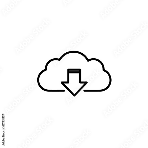 Cloud storage, data saving, simple line art icon, black and white, for website design