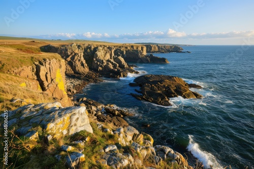 Coastal cliffs and ocean view at sunset
