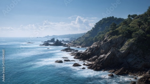 Coastal Serenity: Rugged Cliffs Meet the Azure Sea Under a Tranquil Sky