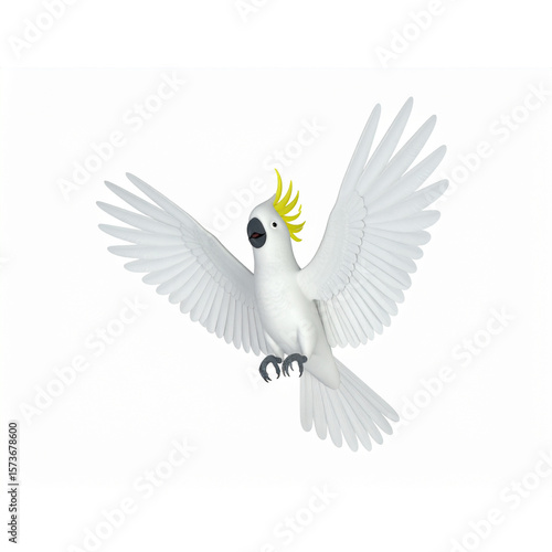 Cockatoo flapping and landing 3d render cartoon character on white background