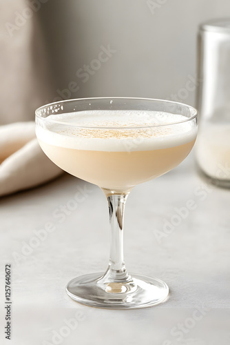 Cocktail glass featuring a beautifully crafted Alexandra cocktail showcasing its creamy texture and elegant presentation in a studio setting