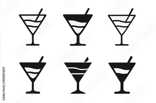 Cocktail Mixing Logos. Cocktail mixing. Icon set. Set Logo of cocktail mixing: layered cocktail glass. harmonious logo variations of the same emblematic