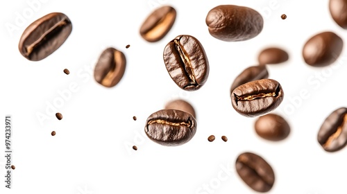 Coffee Beans Falling on White Background