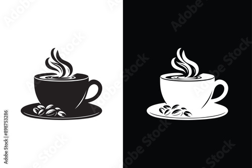 Coffee cup vector icon silhouette. Cups of coffee symbol collection. Vector Illustration black white background.