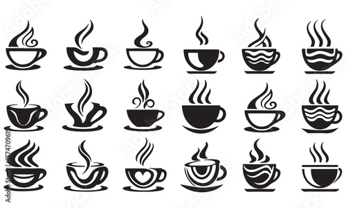 Coffee Cups and Tea Cups Doodles set