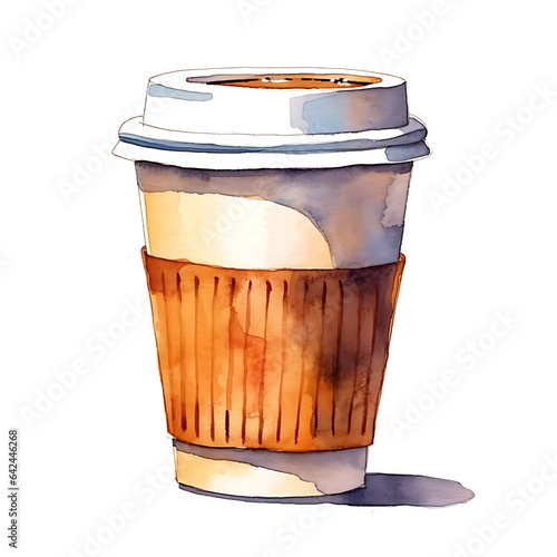 coffee, made of watercolor, gouache paint, white background, isolated, generative ai