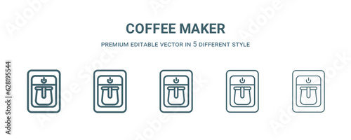 coffee maker icon in 5 different style. Thin, light, regular, bold, black coffee maker icon isolated on white background. Editable vector