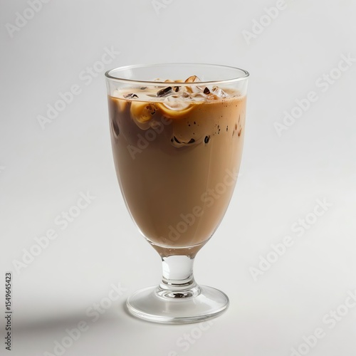 Cold chocolate coffee with whipped cream in glass on white background