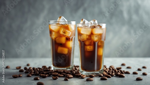 Cold Coffee Beverages in Glasses with Coffee Beans for Summer Refreshment