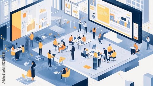 Collaborative Office Environment with Professionals Engaging in Work