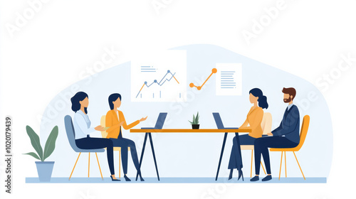 Collaborative team meeting discussing success stories and strategies, with charts and graphs displayed. atmosphere is focused and productive, highlighting teamwork and motivation