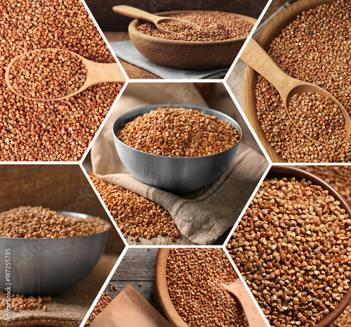 Collage with raw buckwheat