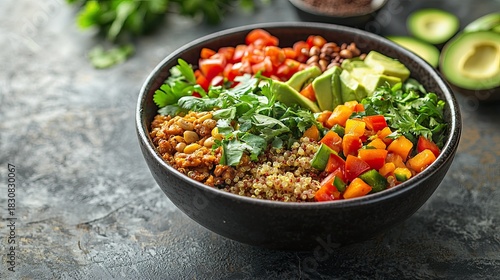 Collar bowl healthy healthy bowl vibrant and fresh bowl filled with quinoa, diced vegetables, avocado, and herbs, perfect for healthy meal preparation and colorful presentation.