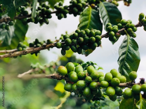 collecting coffee beans, hill tribes, local people, high mountains, coffee plantations The best taste from nature of Thailand.