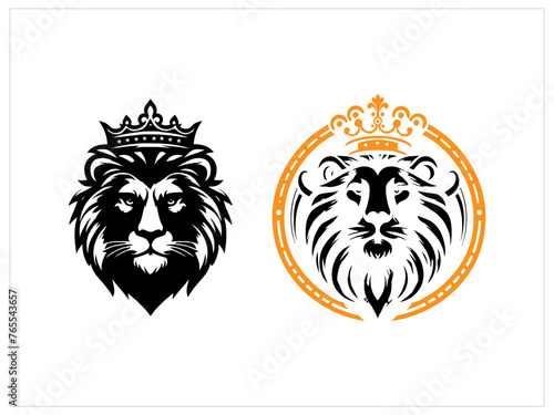 Collection of engravings with lion head,Lion king vector illustration. head of angry roaring male animal with mane and royal crown,Hand drawn lion outline illustration,