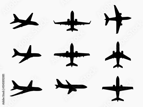 Collection of Airplane Silhouettes in a Grid Pattern Against a White Background