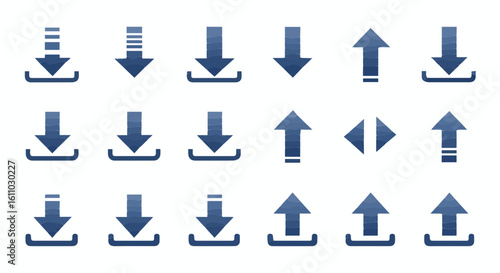 Collection of arrow vector icons, representing download and upload actions for digital interfaces