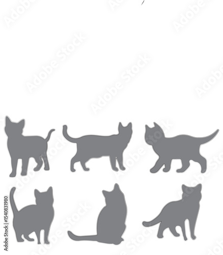 Collection of black cat silhouettes in various poses. Set of black cat silhouette. Kitten silhouette collection isolated on white background.. By Stock Gallery