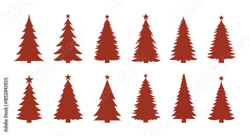 Collection of brown Christmas trees with stars on white background vector