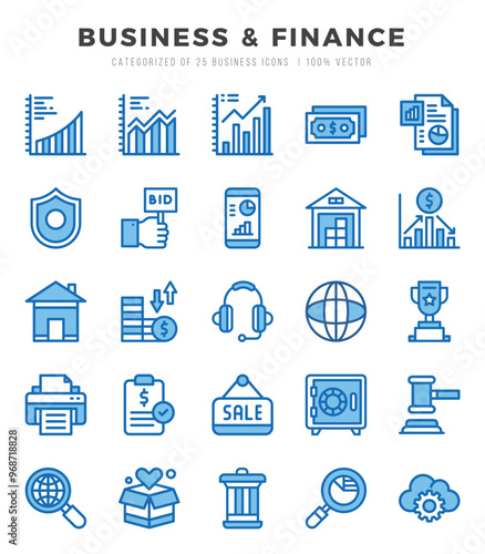 Collection of Business & Finance 25 Two Color Icons Pack.