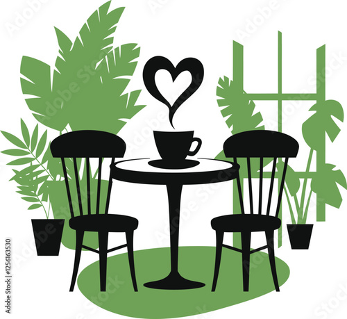 collection of chairs and plants featuring a cup with a love icon