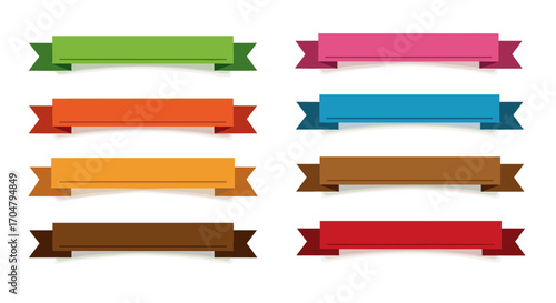 Collection of Colorful Flat Ribbons for Design Elements.