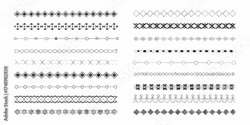 Collection of decorative geometric borders and dividers in black and white for design projects