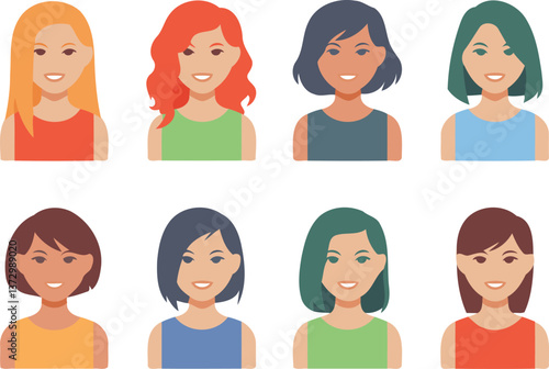 Collection of Diverse Female Portraits in Flat Design Style