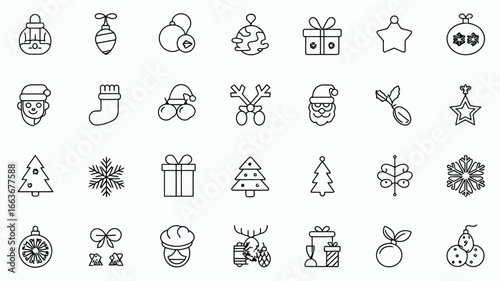 Collection of festive christmas icons and symbols in a clean outline style for holiday design