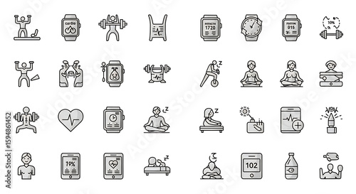 Collection of fitness and health related icons showing exercise and wellness activities on white background ai genrated