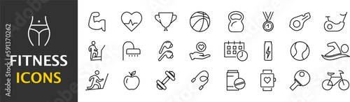Collection of fitness, sport icons. Simple black symbols. Vector illustration. EPS 10