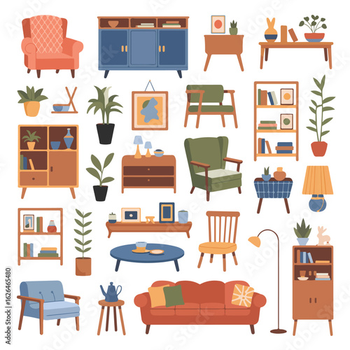 Collection of furniture icons for home interior design vector illustration set