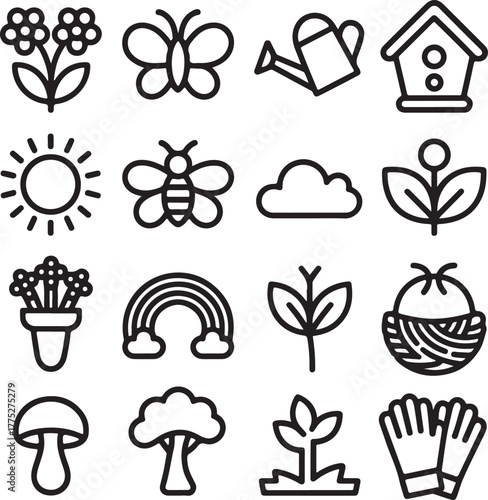 Collection of garden and nature icons on white background