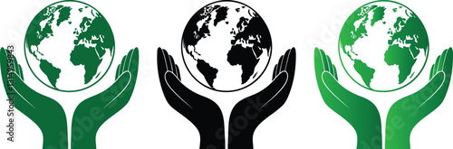 collection of hand holding earth, Eco-Friendly Hands Holding Globe Vector Illustration