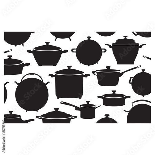 Collection of Kitchenware Silhouettes, Pots, Pans, Utensils, and More