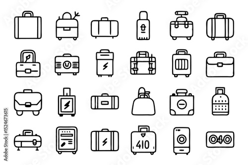 Collection of line icons depicting bags luggage travel bags and shopping bags isolated on transparent background