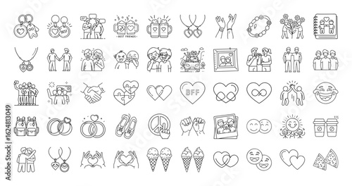 Collection of outlined icons representing friendship, relationships, love, and togetherness