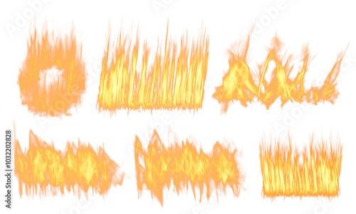 Collection of Realistic Fire Flames Isolated on Black Background for Design Projects