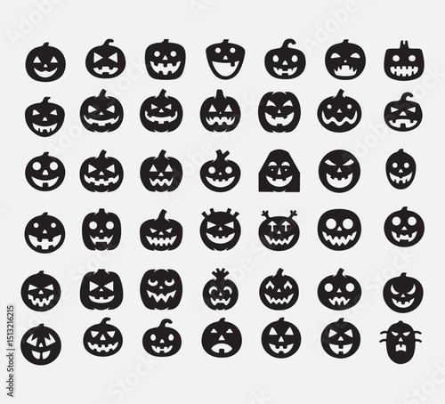 Collection of twenty spooky jack o lantern silhouettes with varied scary faces