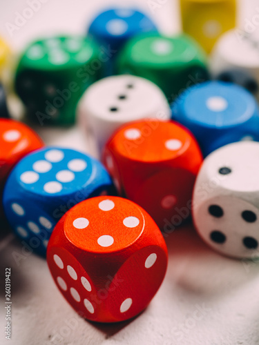 Color classic dices cubes. board game background