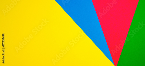 Color papers geometry flat composition background with yellow, green, red and blue tones