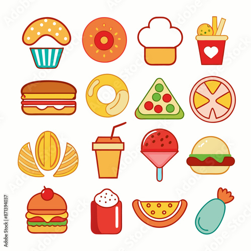 Colored food icons isolated white background (2)