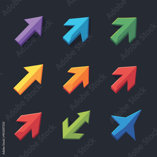 Colorful 3D arrows pointing in different directions on a dark background