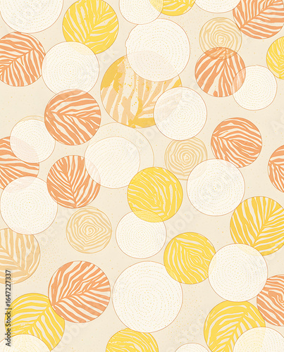 Colorful abstract circles featuring leaf patterns on a light background, suitable for modern decor and design