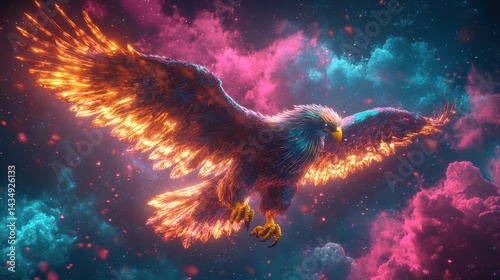 Colorful Abstract Eagle Soaring Through Vibrant Cosmic Clouds