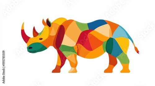 Colorful Abstract Rhinoceros Illustration Featuring Vibrant Geometric Shapes in Bright Hues, Perfect for Posters, Education Materials, and Wildlife Awareness Campaigns