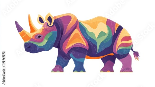 Colorful Abstract Rhinoceros with Vibrant Patterns and Artistic Design Showcasing Nature’s Beauty in a Modern Style, Perfect for Wildlife and Conservation Themes
