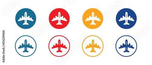 Colorful aircraft icons vector set, modern airplane icon, aviation and travel symbols, for airline branding, and airport signage.