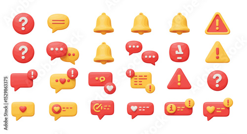 Colorful alert and notification icons with speech bubbles and symbols vector illustration