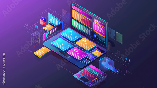 Colorful and vibrant e-learning platform with interactive modules, quizzes, and live teacher support displayed on a laptop screen
